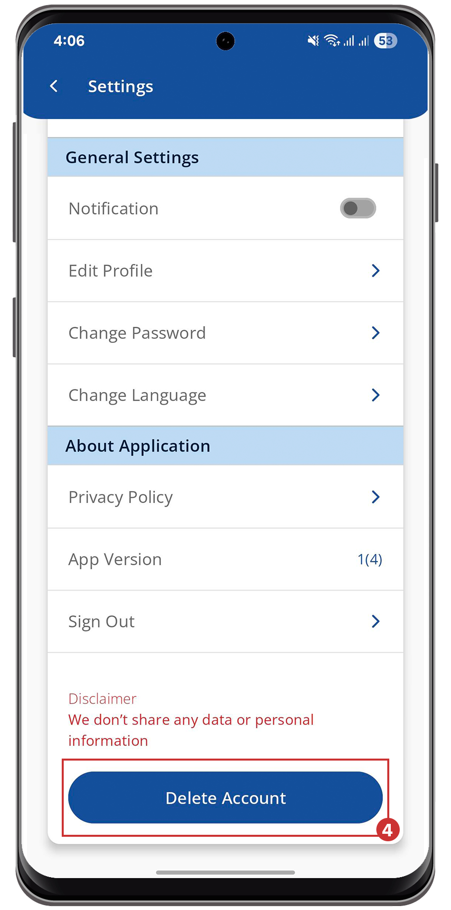 Please follow the steps outlined below to delete your account on the TMA eCardio mobile application.